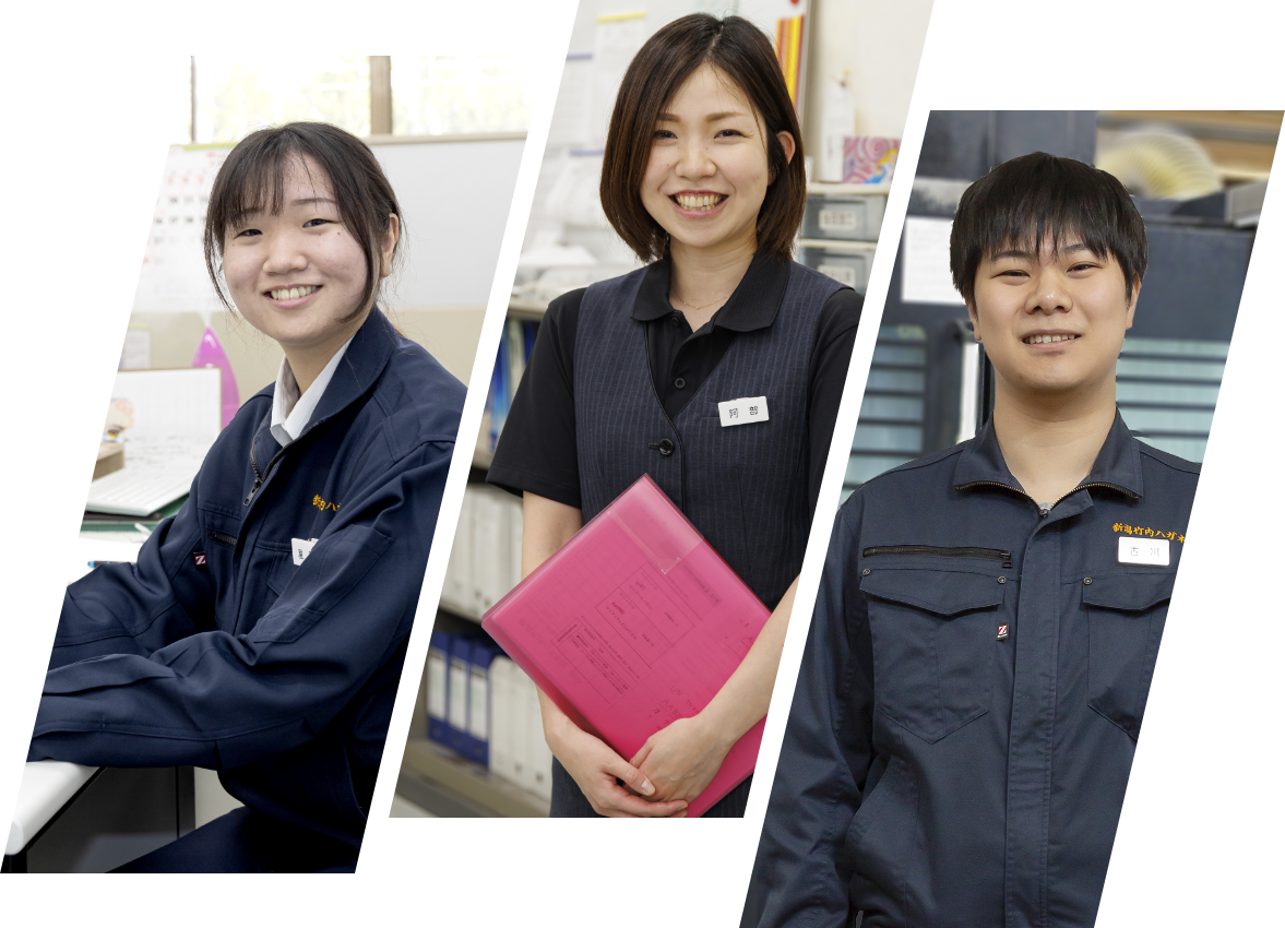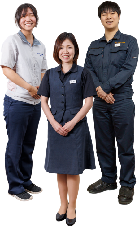 | 教育研修 | ■入社時教育 ・会社概要 組織図、服務規範、服飾規程等 ・安全衛生関係 安全基本行動規定等 ・QC工程フローチャート ・総務関係 一般社会人研修、就業規則、緊急連絡先等 ■配属後教育 ・職場説明 部門の役割、責任、内容、期待される事、決め事、作業標準、職場見学等 ・OJT 実務を少しずつ行ってもらい、独り立ちできるまで職場の先輩が丁寧に 指導します。 |